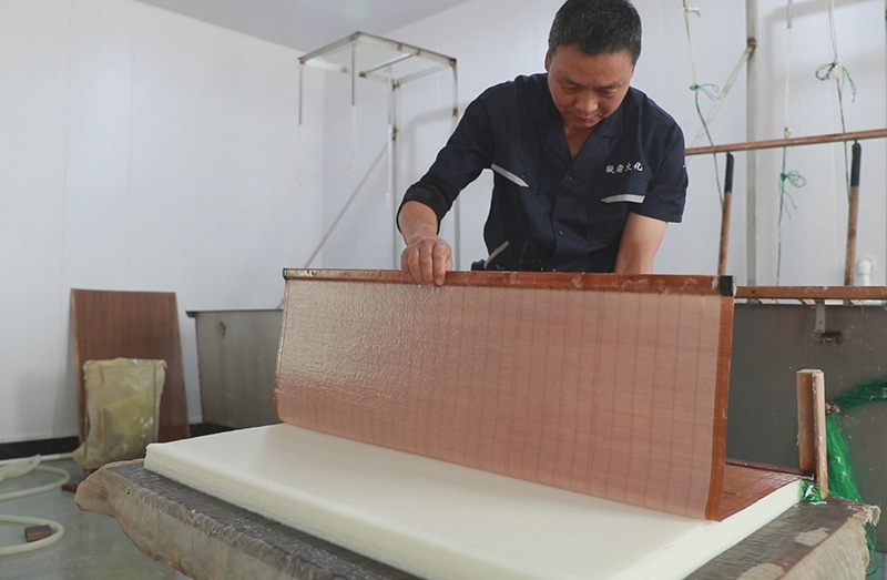 徽州傳統(tǒng)手工楮皮紙,采用傳統(tǒng)手工抄紙工藝,經(jīng)過27道工序,以手工精細(xì)制作而成,產(chǎn)品主要有楮皮紙、云龍紙、皺紋紙、落水紙、棉紙、版畫、攝影畫、手撕畫專用紙。